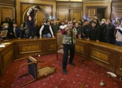 Участники протеста против прекращения войны в Нагорном Карабахе ворвались в здание правительства Армении в ночь на 10 ноября сразу после того, как Пашинян вместе с президентами Азербайджана Ильхамом Алиевым и России Владимиром Путиным подписал трехсторонний договор о прекращении боев в Нагорном Карабахе.
