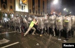 Десятки человек задержаны, но полиция пока не решается арестовать оппозиционных лидеров, хотя премьер-министр Мамука Бахтадзе, выступив по всем телеканалам, грозным тоном заявил о неминуемой "правовой ответственности" всех политиков, "призывавших к штурму парламента и насилию над полицейскими".